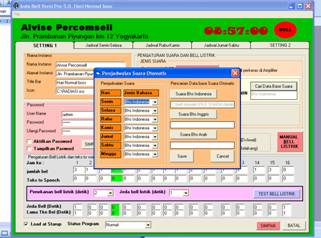 - Mengeluarkan Bunyi otomatis Jam, Hari, Jam Pelajaran Ke 1 - 16, jam Istirahat, Selesai Istirahat, Jam pelajaran Usai dengan pilihan suara 3 Bahasa ( Indonesia, Inggris, Arab). Bisa anda tambahkan sendiri bahasanya (dengan melakukan rekaman Suara Mandiri). (Versi PRO)