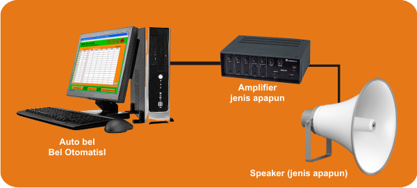 - Gambar A adalah perangakat keras autobel versi pro dimana anda harus pesan secara terpisah, hardware ini untuk mengendalikan amplifier (supaya amplifier bisa mati dan hidup secara otomatis sesuai dengan jadwal yang dimasukkan) dan juga sebagai pengendali bel listrik(gambar B) jika disekolah memiliki bel listrik.
